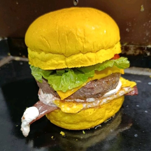 Pão Brioche, 02 Carne Artesanal 120 Gramas, Bacon Em Tiras Em Bobro, 01 Fatia De Muçarela, 01 Fatia De Cheddar, 01 Ovo... Ver completo