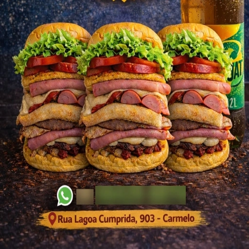 Três lanches compostos por: Pão, Bacon, 2 Carnes De Hamburguer, 2 Ovos, 02 Muçarelas, 02 Presuntos, Salsicha, Frango ... Ver completo